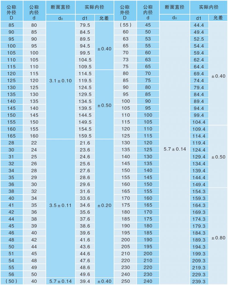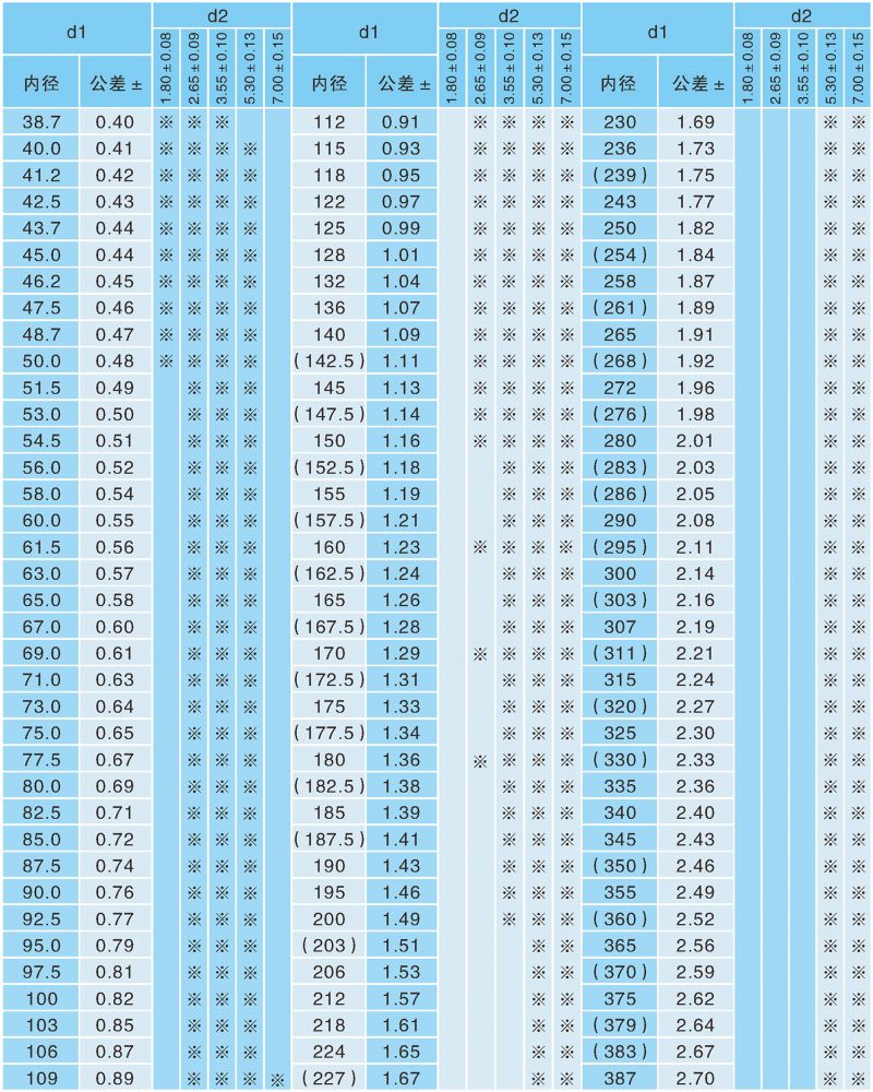 表1:O型圈標(biāo)準(zhǔn)一覽表