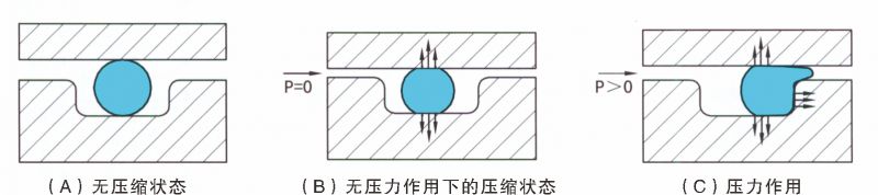 O型密封圈是一種自動雙向作用密封元件。安裝時其徑向和軸向方面的預(yù)壓縮賦與O型密封圈自身的初始密封能力。它隨系統(tǒng)壓力的提高而增大。